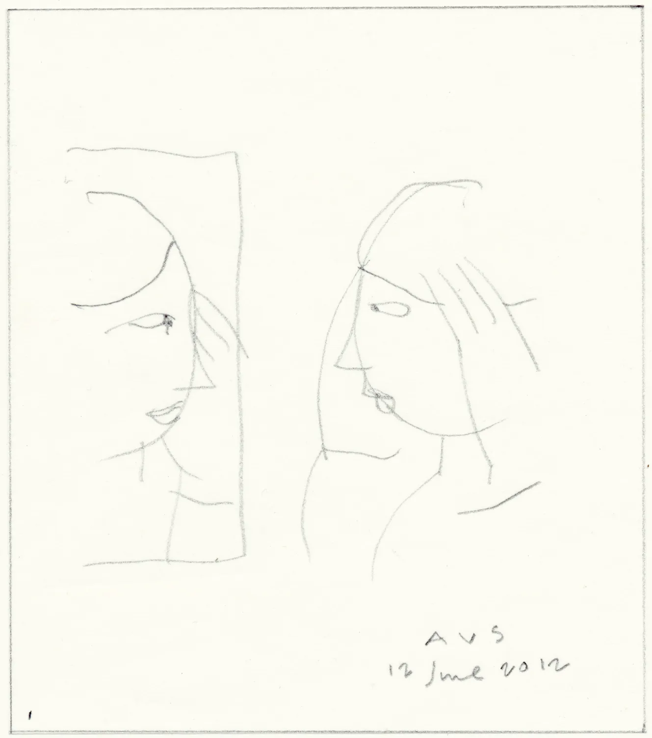 - Pencil on paper with pastel tone on reverse