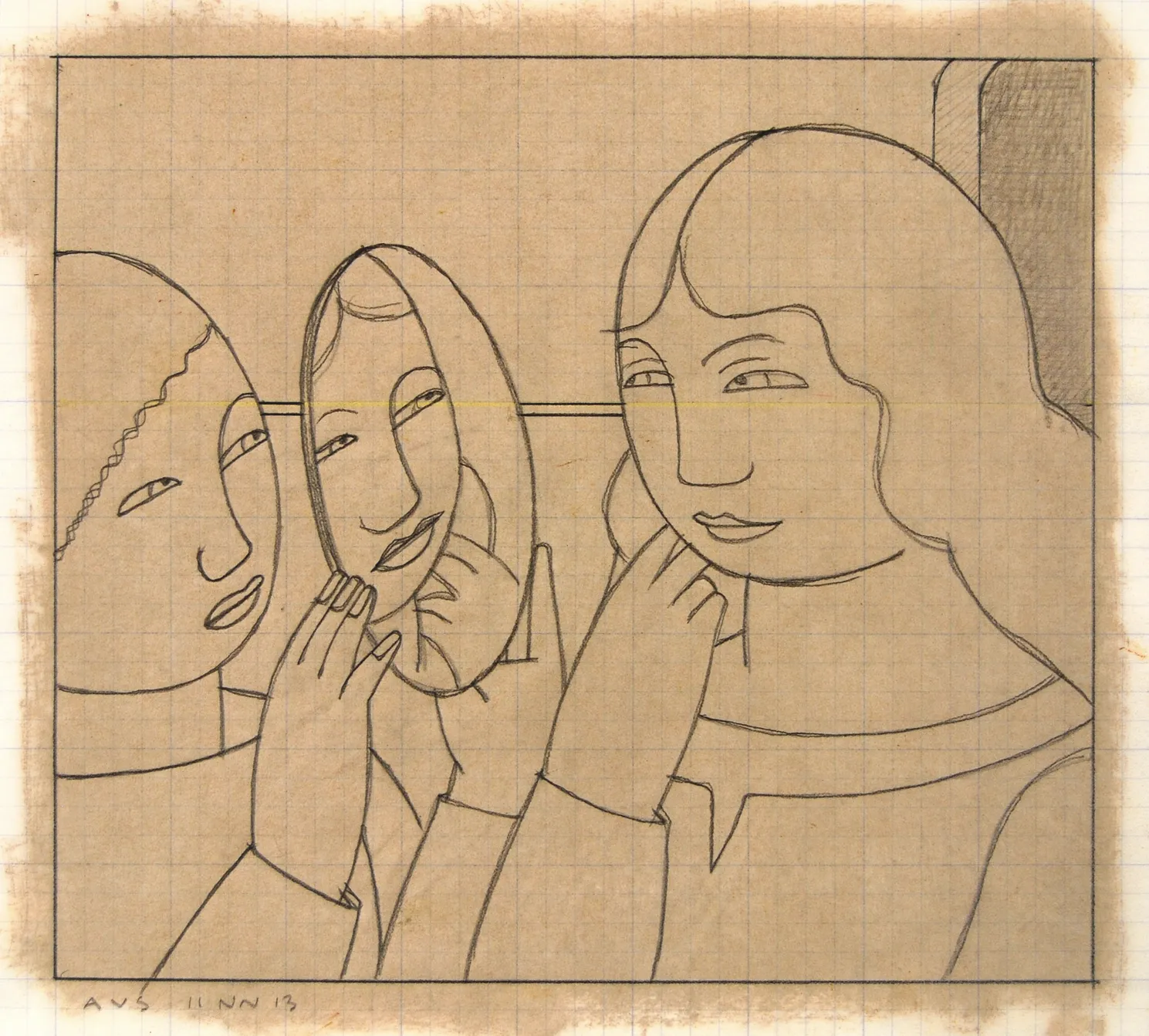 - Two Women with a Mirror, drawing no. 3