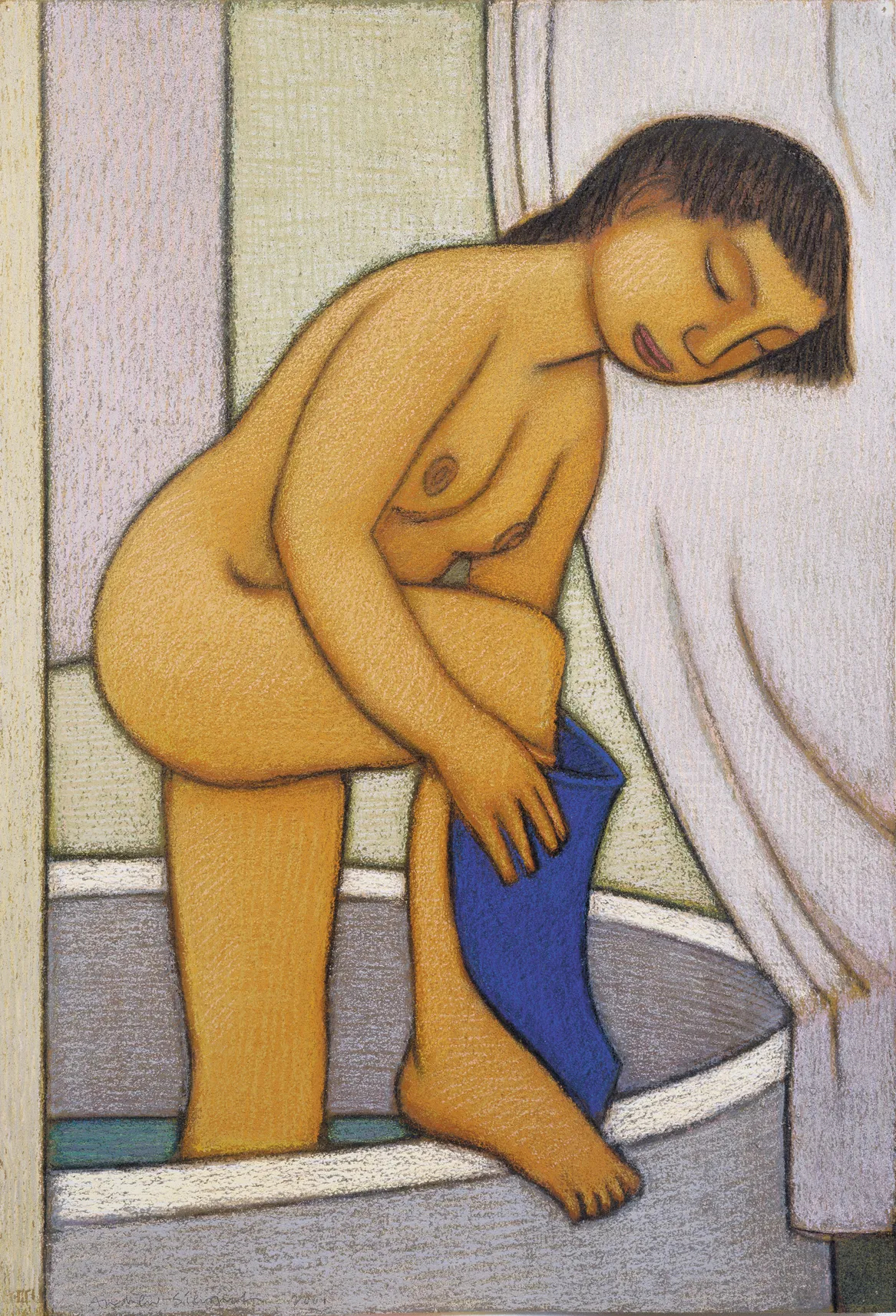 woman_drying_her_leg_pastel